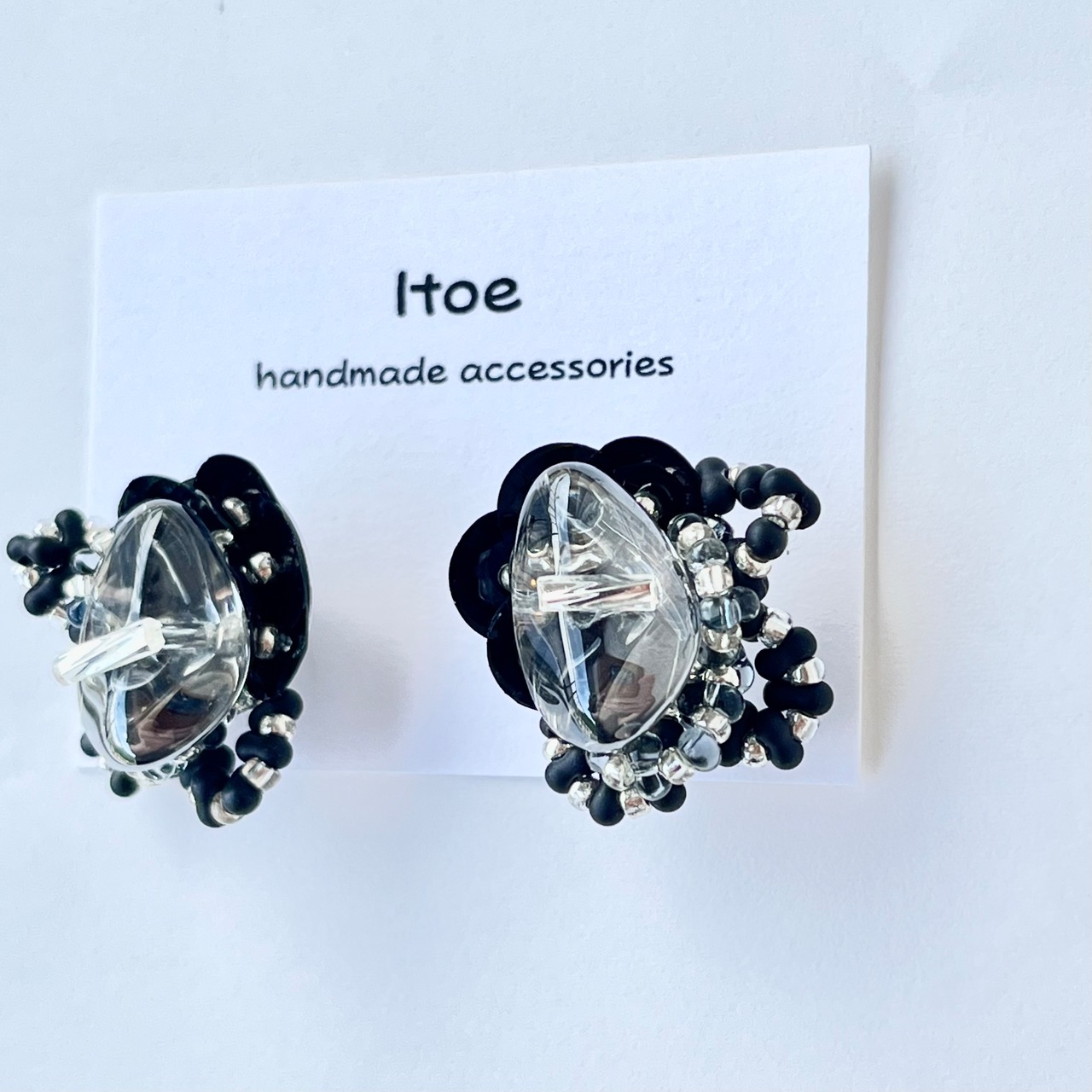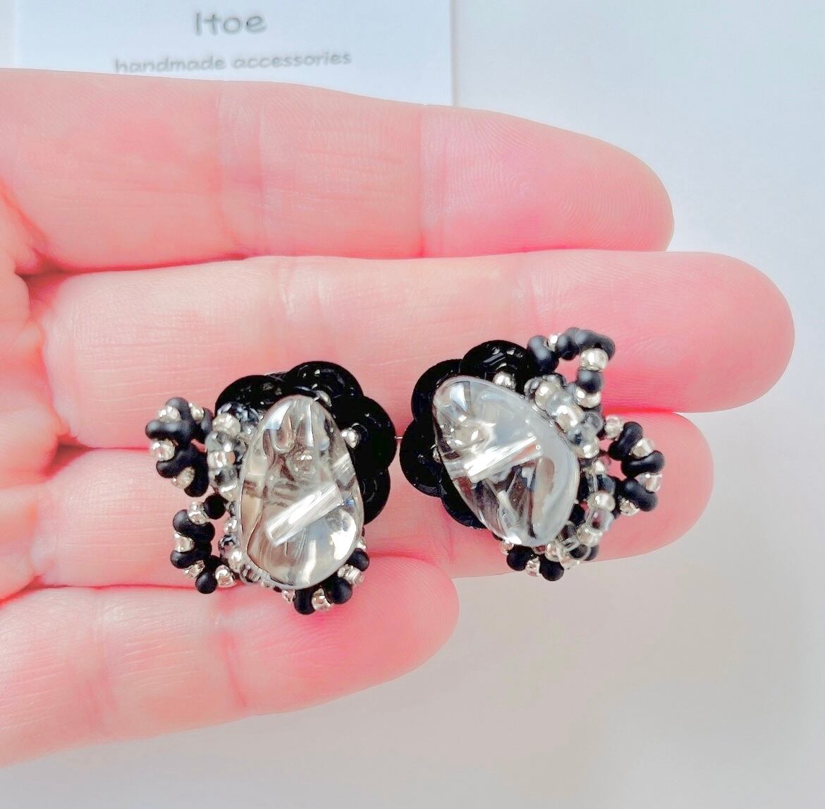 スタッドピアス ガラスビーズ ファルファーレビーズ 大人かっこいい モノトーン