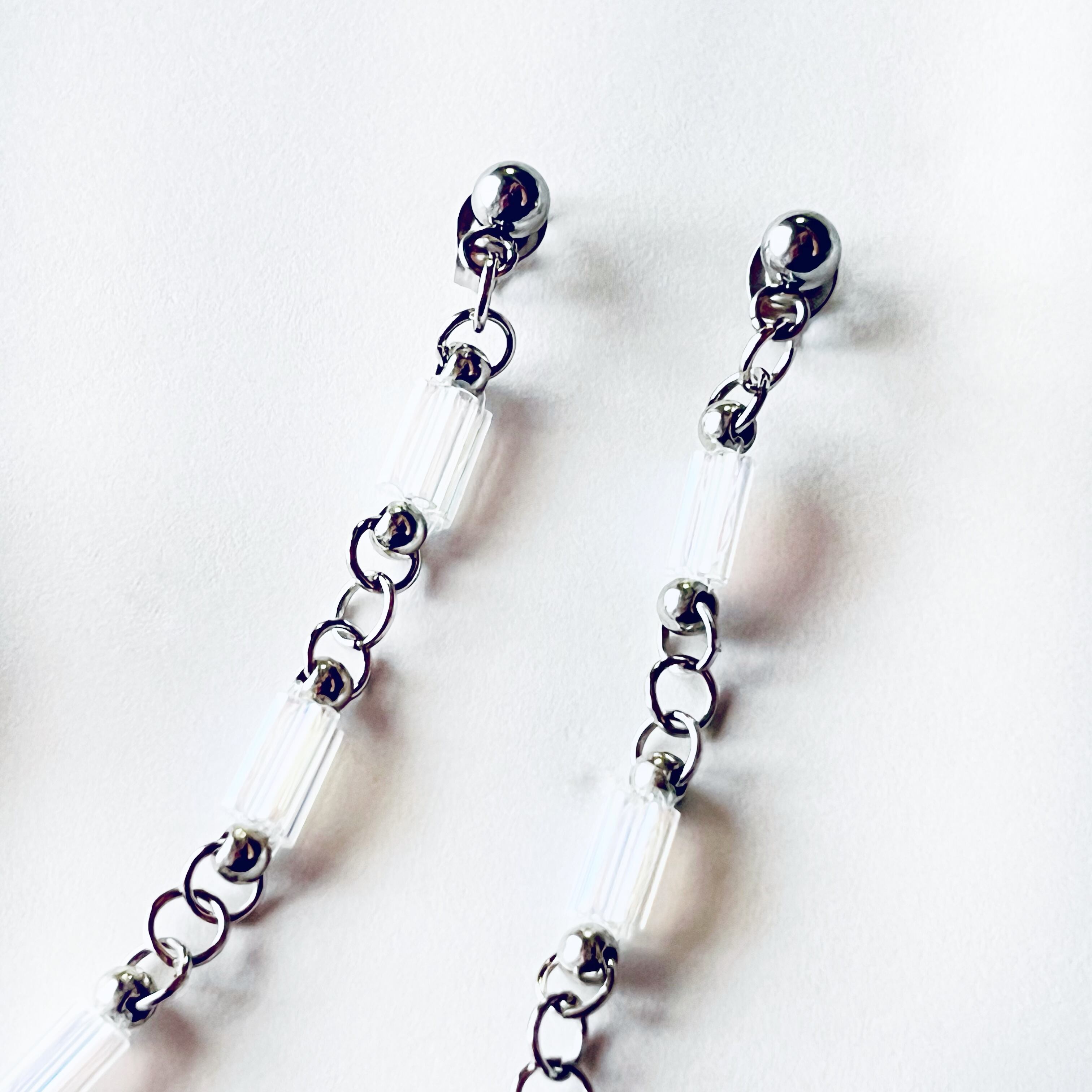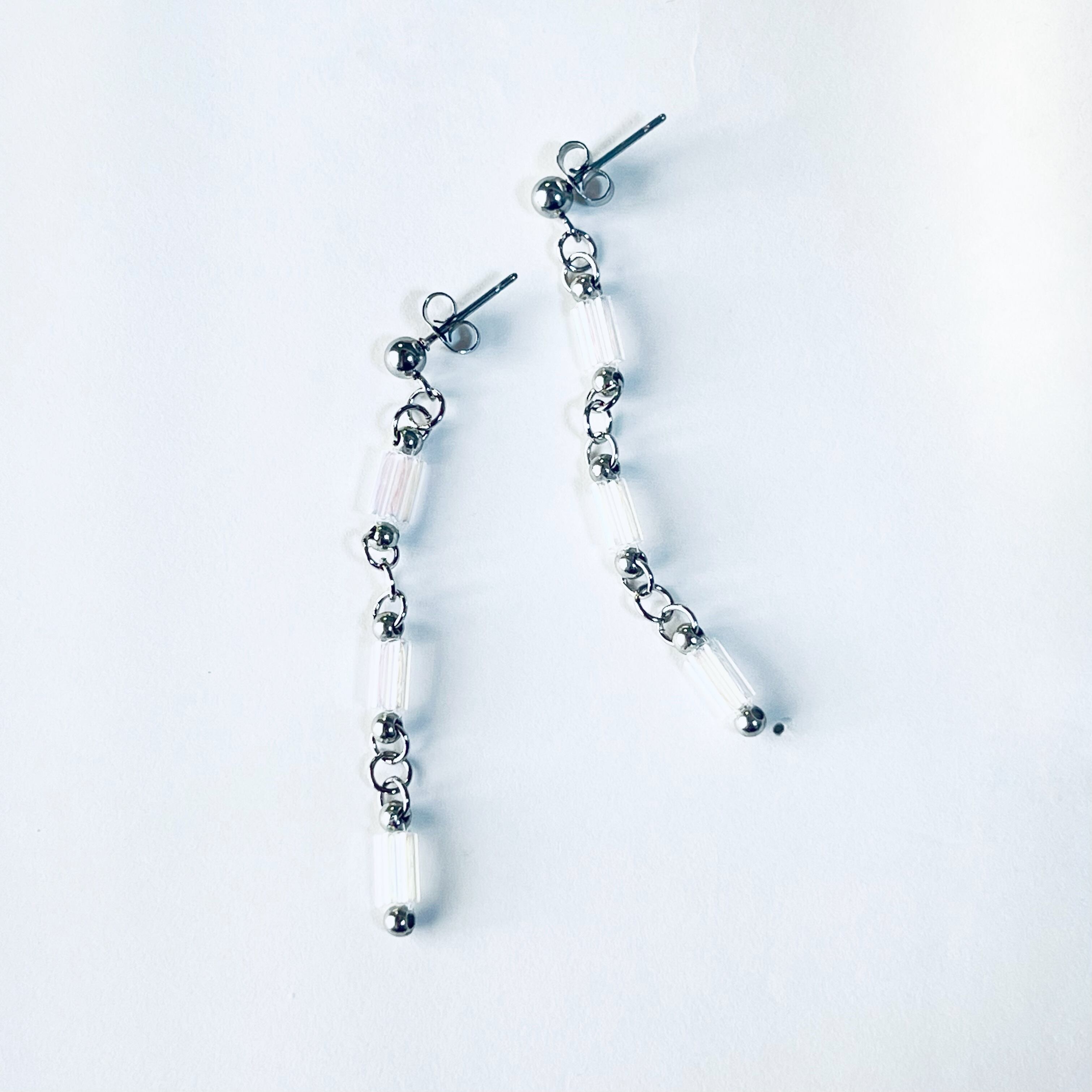 ビーズが揺れるエレガントなデザインの耳飾り。