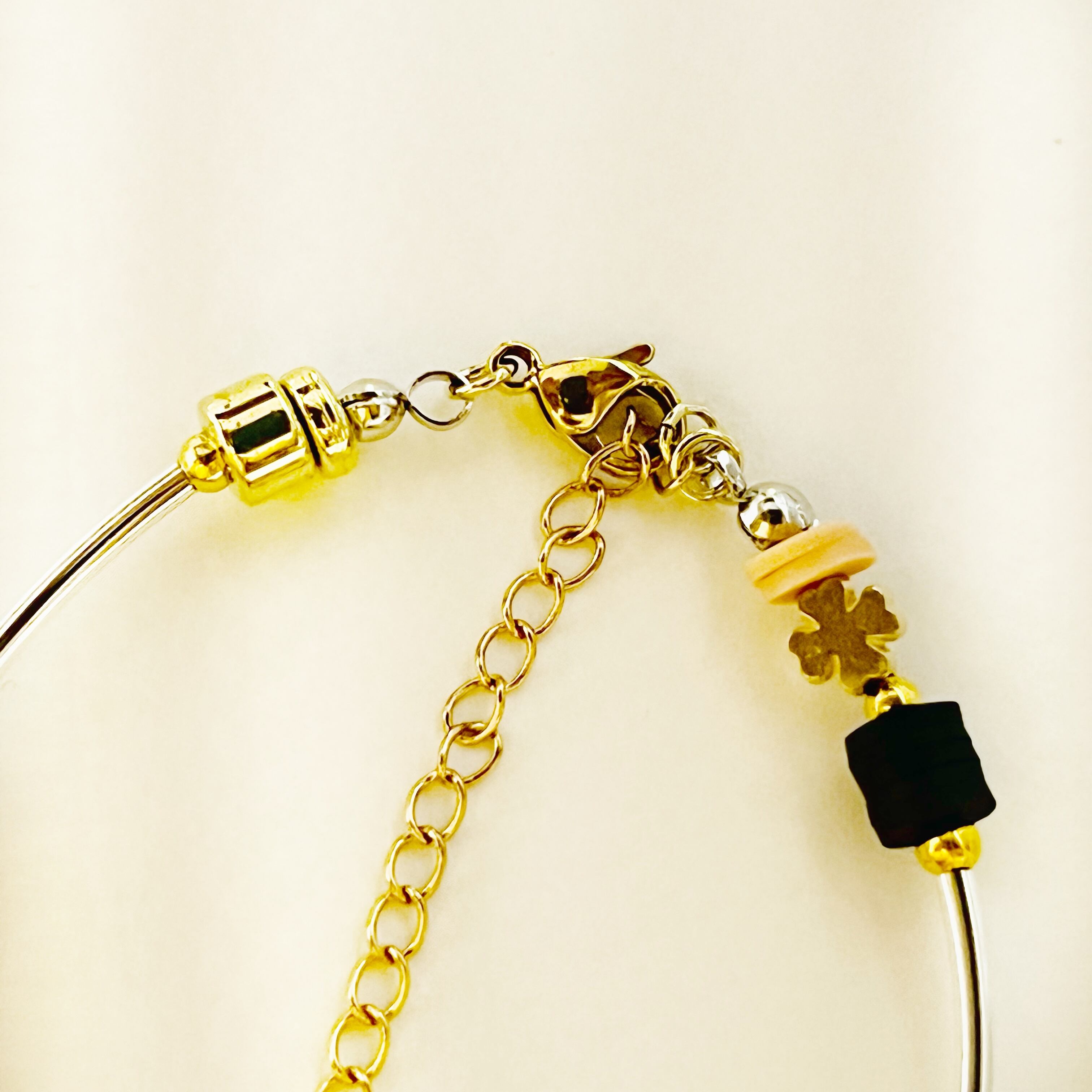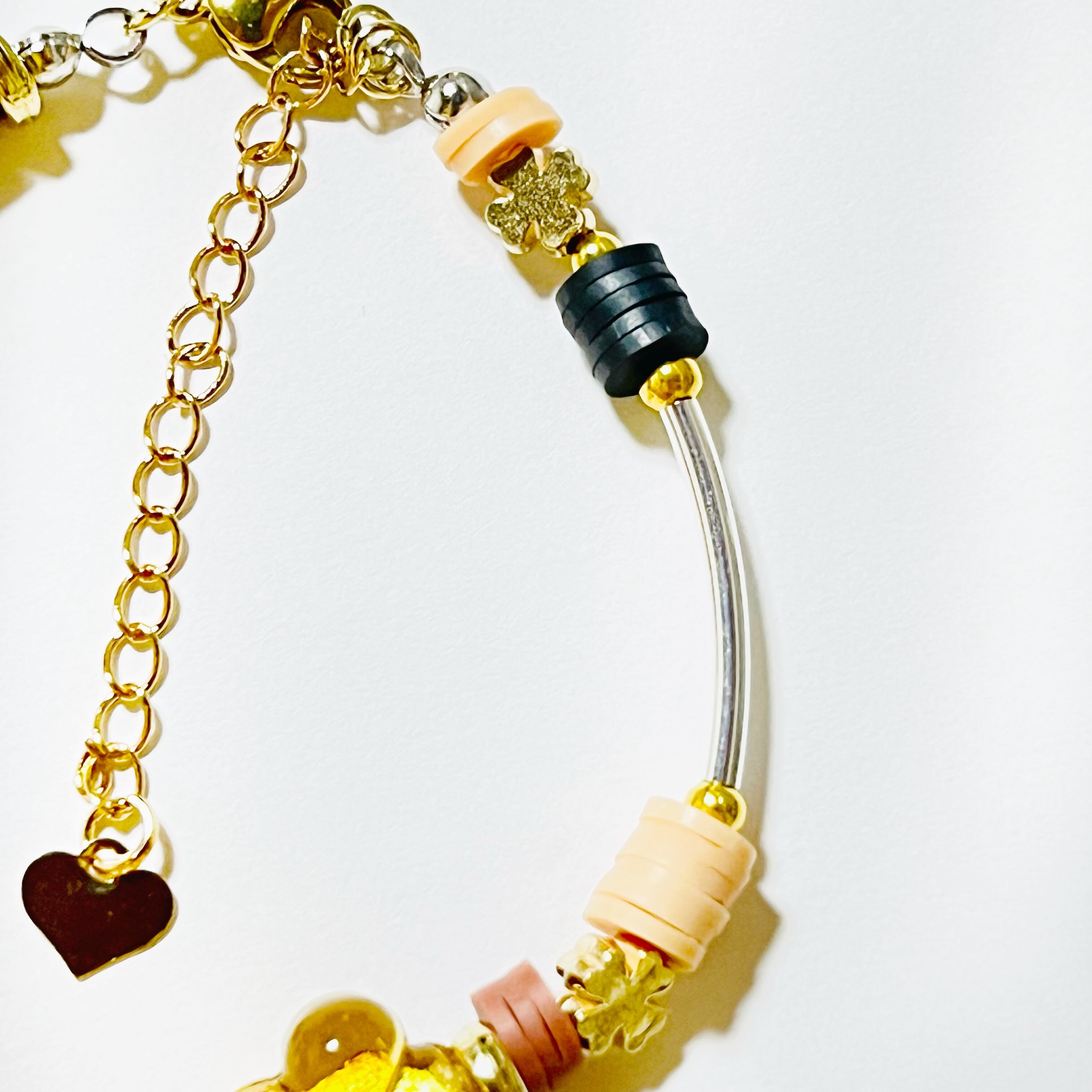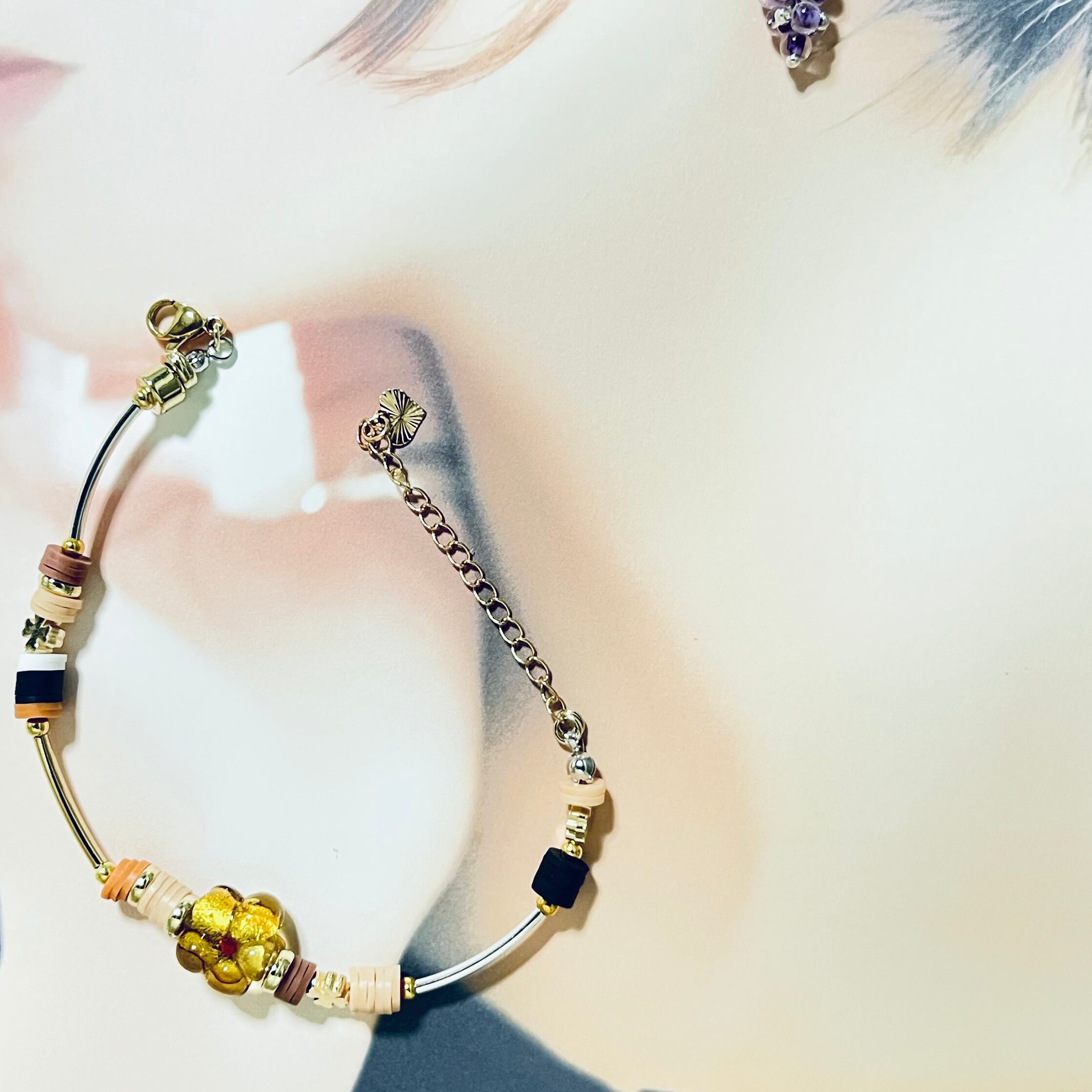 風合い豊かなブラウンのポリマークレイで作られたボヘミアン風ブレスレット。